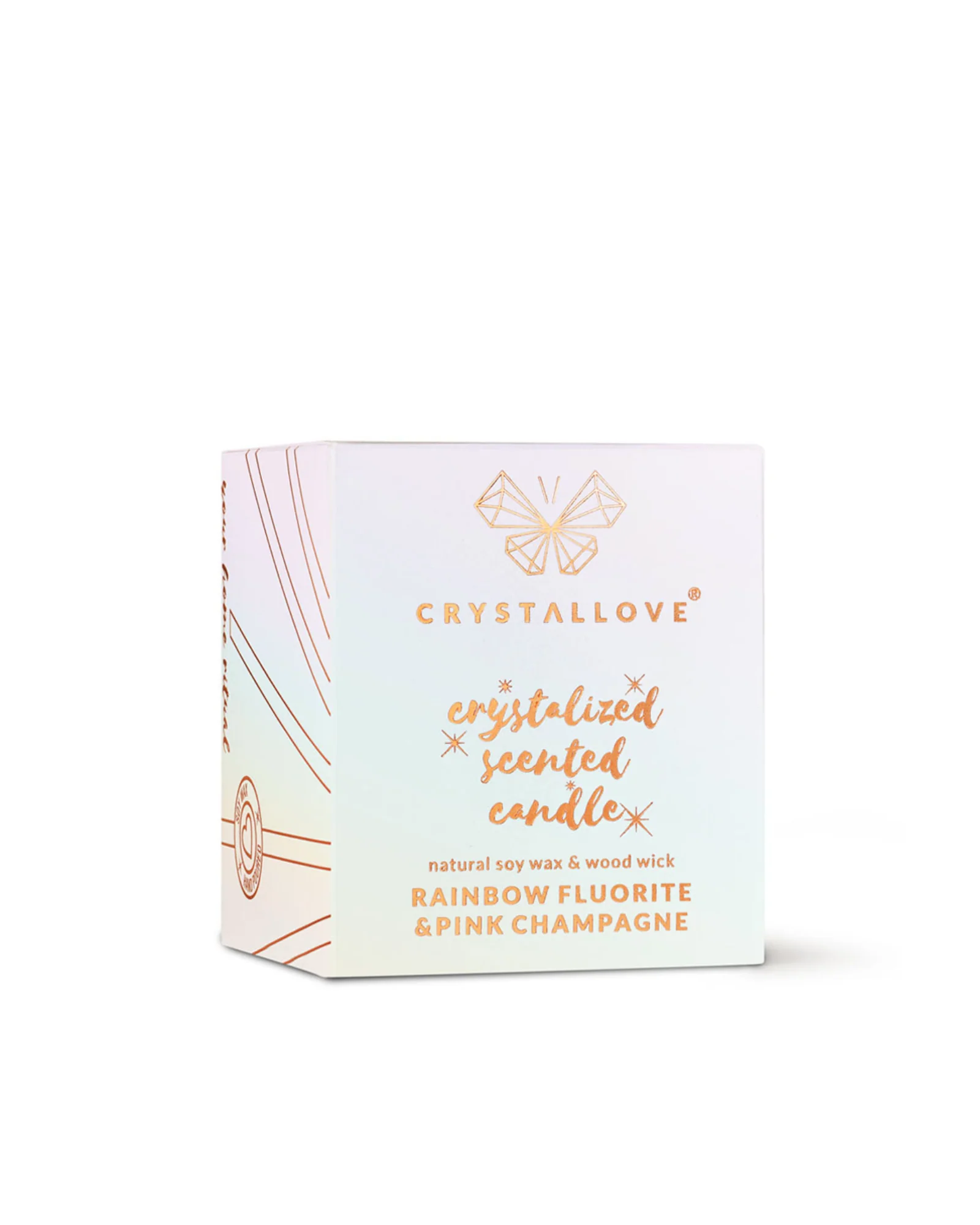 Bougie soja Crystallove fluorine arc-en-ciel et champagne rose