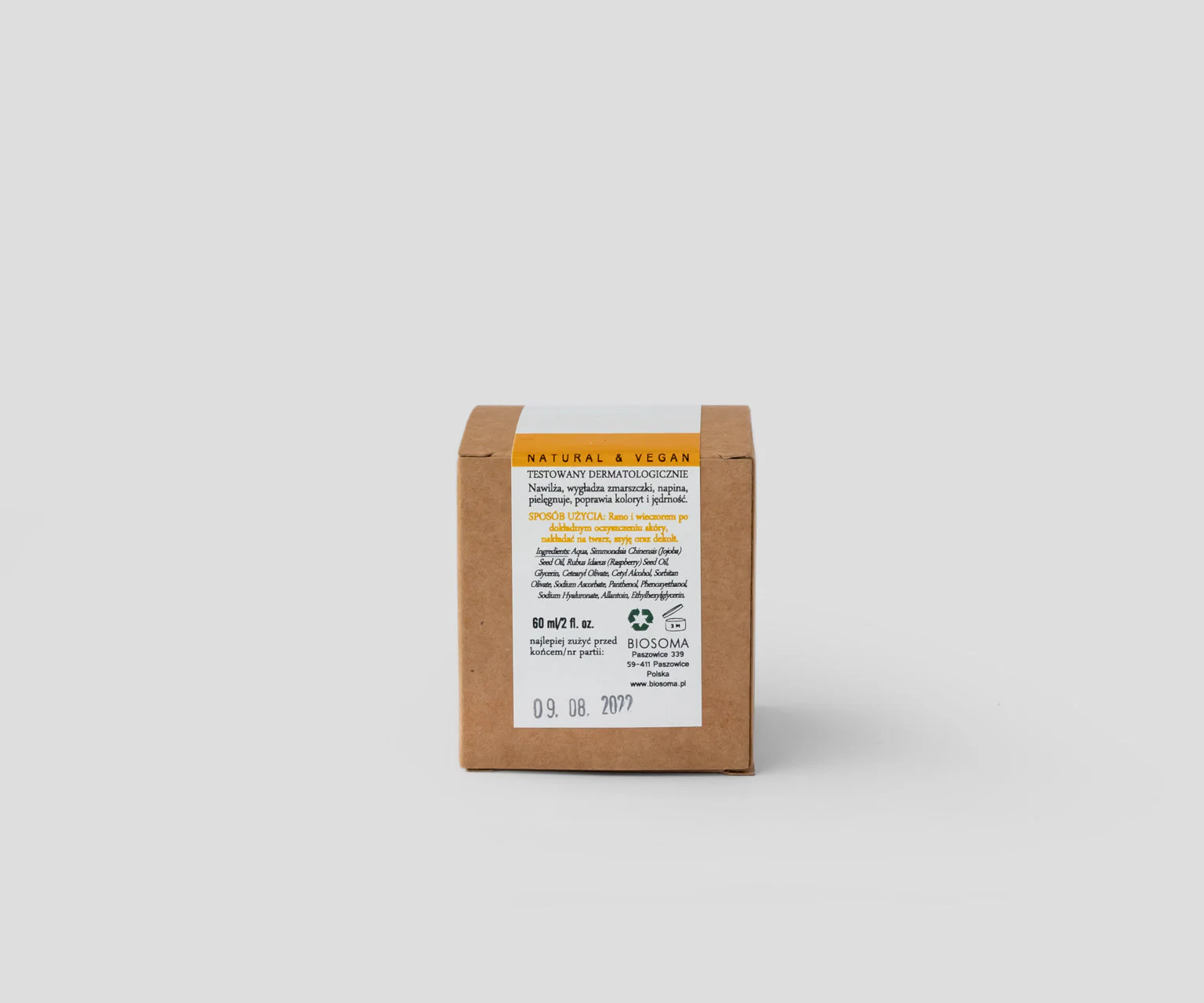 La crème a été testée sur un groupe de personnes d'âges différents, sous la direction d'un dermatologue. L'effet nourrissant et hydratant de la crème a été confirmé, ainsi que l'amélioration de la tension, de la fermeté et de la douceur de la peau, et la réduction des rides. Grâce au panthénol et à l'allantoïne, la crème pour le visage à la framboise calme la peau irritée, l'hydrate et lui redonne son éclat d'antan. L'acide hyaluronique contenu dans la crème comble les rides. L'abondance d'huiles précieuses telles que l'huile de pépins de framboise et l'huile de jojoba nourrit et raffermit la peau. Le tout est rehaussé par la miraculeuse vitamine C, dont les propriétés antioxydantes sont connues de tous.